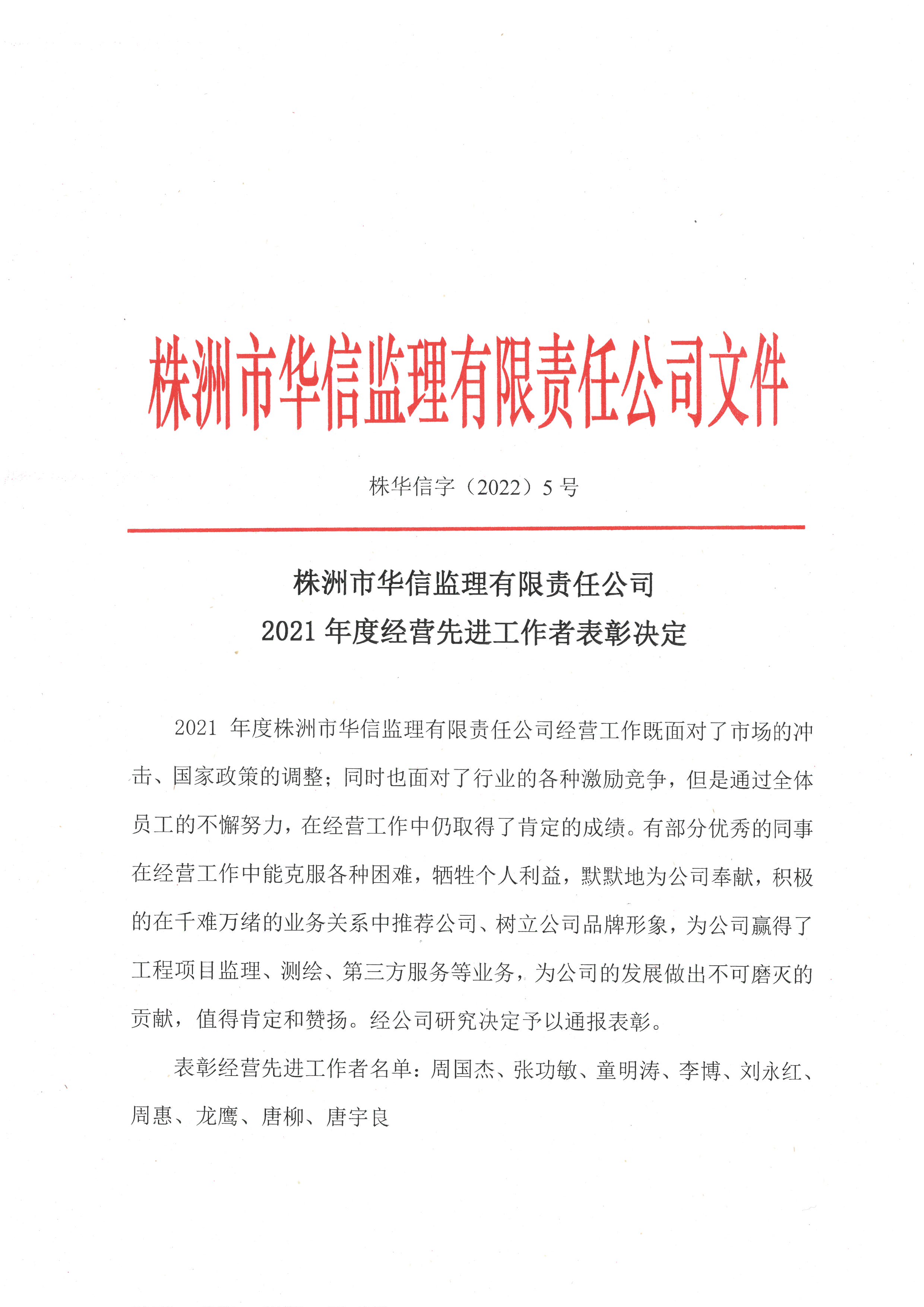 2021年度經(jīng)營先進工作者表彰決定