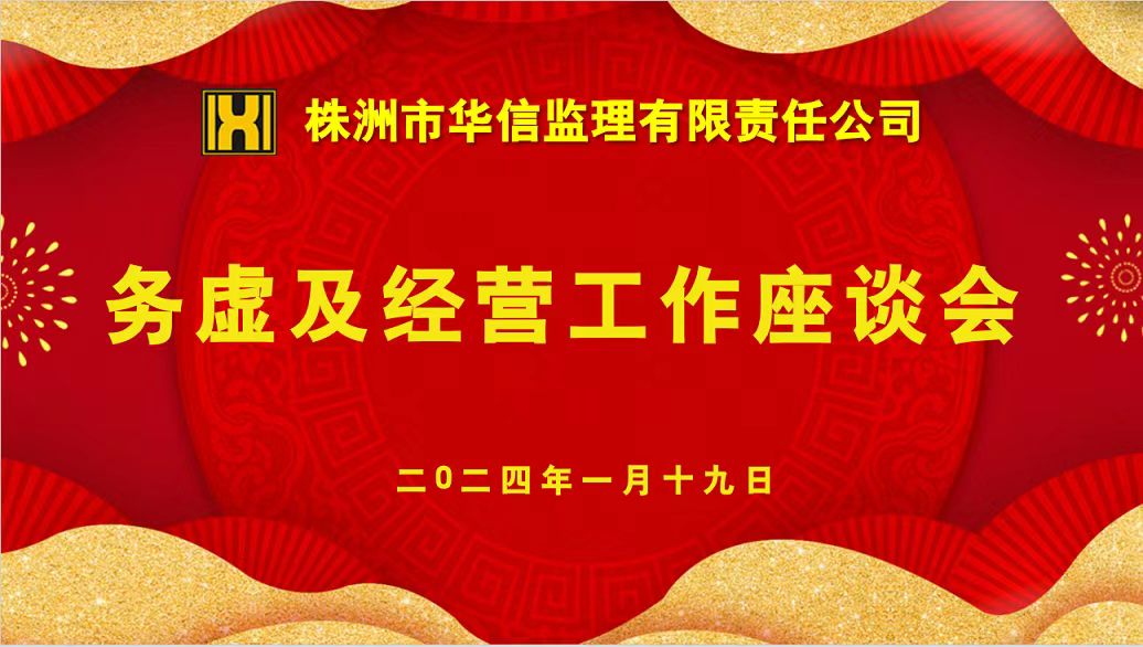 株洲市華信監(jiān)理管理團(tuán)隊(duì)30余人于2024年1月19日在公司會議室召開務(wù)虛及經(jīng)營工作座談會。公司董事長、總經(jīng)理周國杰主持會議。
